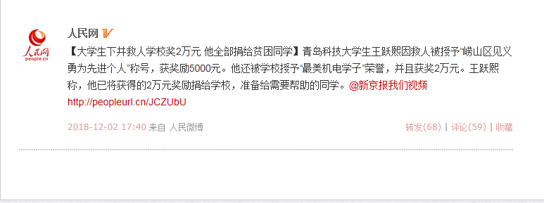 人民微博报道3003新葡官方网站王跃熙见义勇为事迹:网址:新京报我们视频http://peopleurl.cn/JCZUb