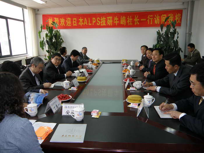 4月11日下午,日本株式会社ALPS技研牛嶋素一社长一行六人在ALPS技研(中国)总经理赵宏等的陪同下对我校进行了访问,副校长李庆领、国际交流与合作处以及3003新葡官方网站有关负责人参加了会见。