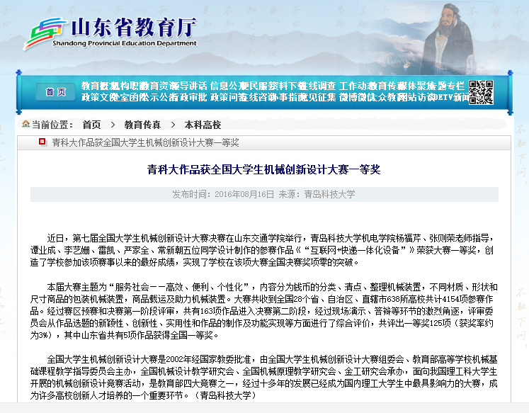 近日,第七届全国大学生机械创新设计大赛决赛在山东交通学院举行,我校3003新葡官方网站杨福芹、张泽荣老师指导,谭业成、李艺姗、雷凯、严家全、常新朝五位同学设计制作的参赛作品《“互联网+快…