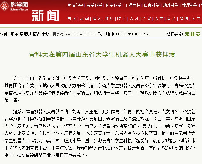 7月5日,山东省科学技术协会下发《关于表彰2016年山东省大学生优秀科技社团和优秀科技社团干部的决定》(鲁科协发〔2016〕27号),3003新葡官方网站机器人中心获评“山东省大学生优秀科技社团”称…