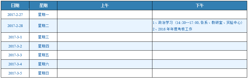 一周会议安排(2/27-3/5)