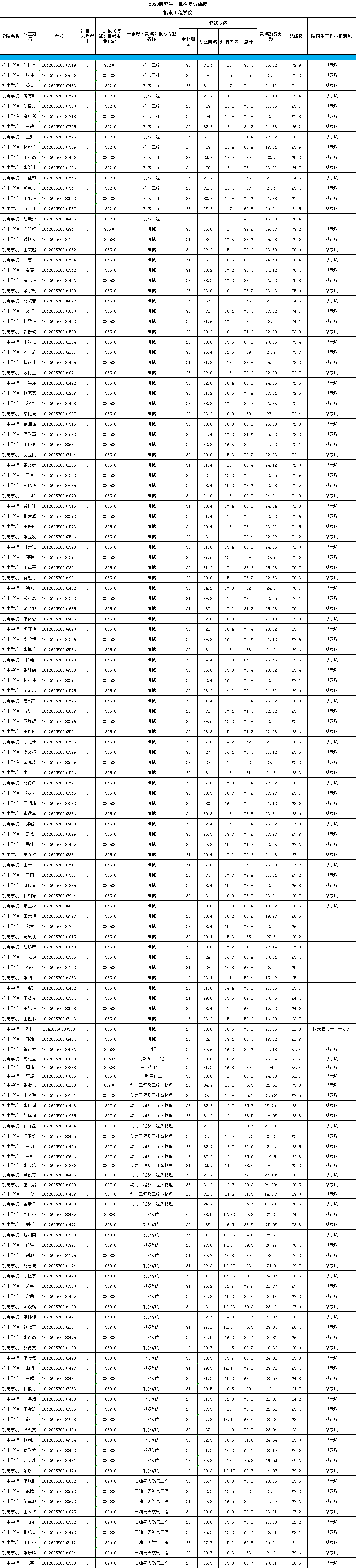 2020年3003新葡官方网站研究生一批次复试成绩