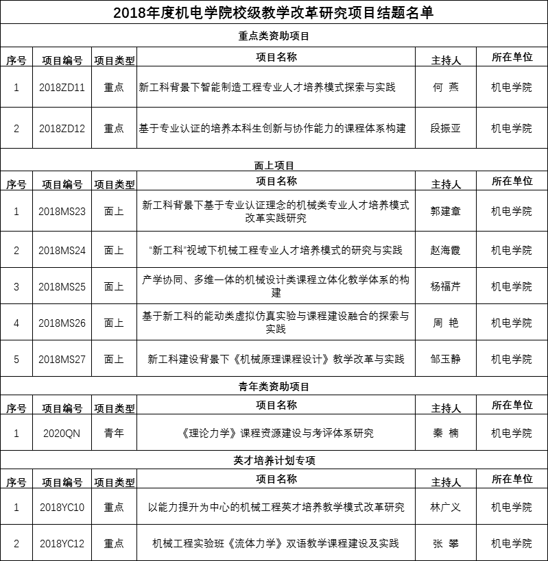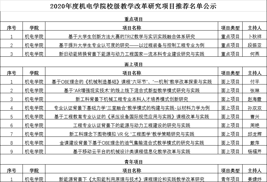 根据学校《关于开展2020年度校级本科教学改革研究项目立项申报暨2018年度校级教改项目结题工作的通知》要求,3003新葡官方网站开展了校级教改项目评审工作,经项目负责人申报,学院评审,共通过验收准予结题10项(其中2项暑期提前结题),推荐新立项13项,现将结果公示如下: