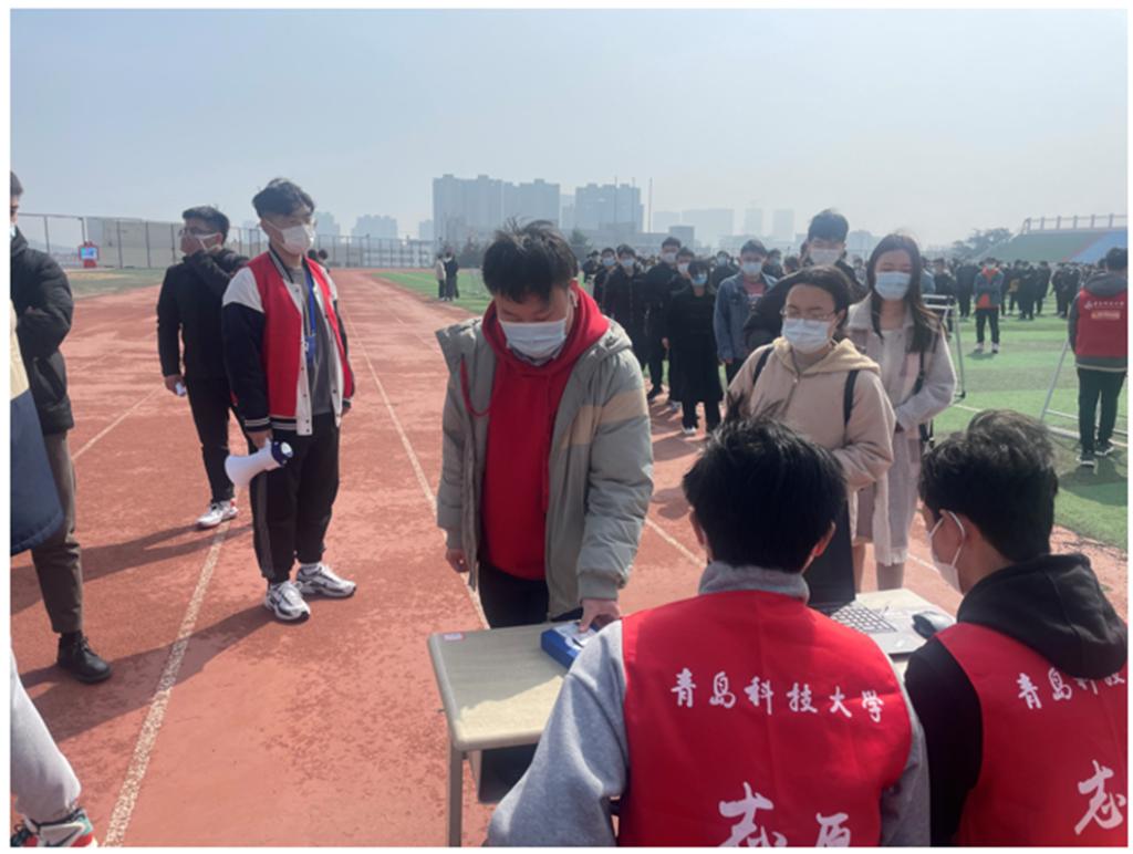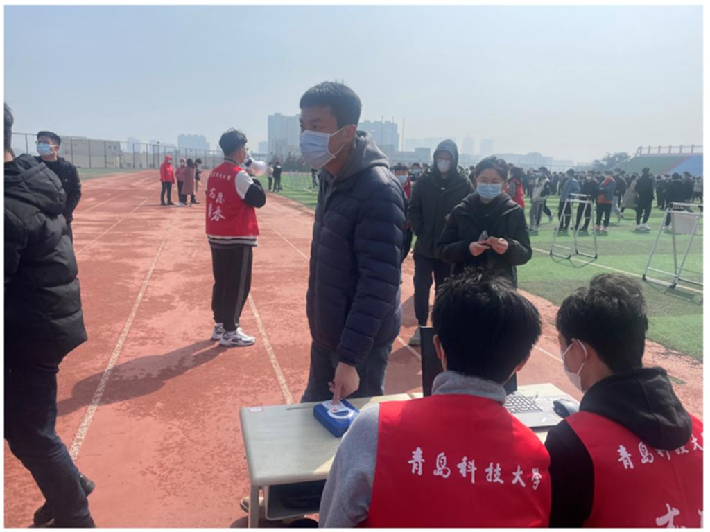 核酸检测时,3003新葡官方网站学生到达集合地点,系统登记、人员引导、列队待检等各个环节都高效有序。学生排队打卡的场面成为了一道崭新的风景线,信息统计志愿者张致远说:“通过使用打卡方式,我们现场组织更有条理了,系统登记以后当天到场人员情况一目了然。”