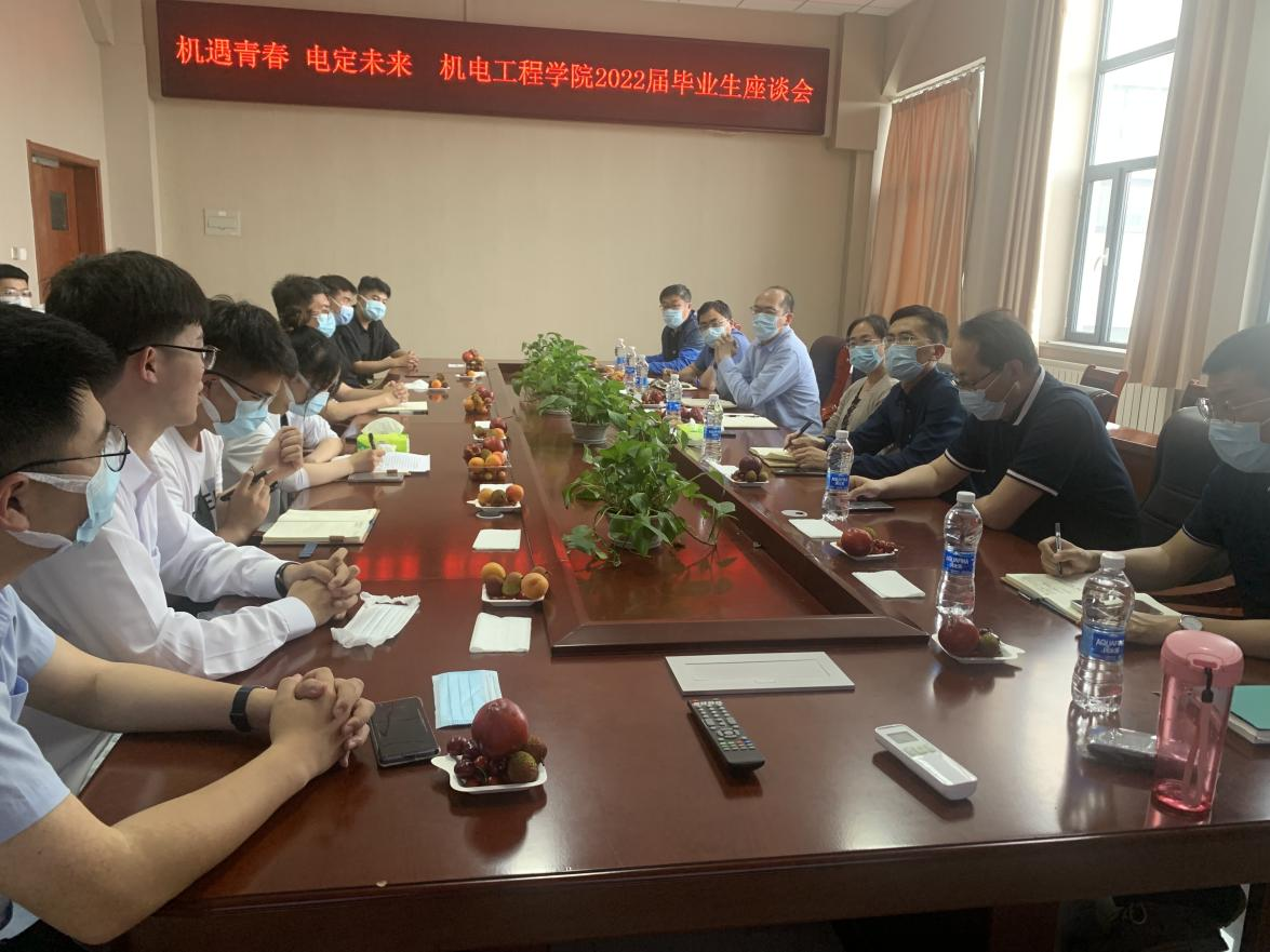 何燕院长认真听取了毕业生代表们的交流发言和意见建议,代表学院对大家关心和支持学院发展表示了肯定与感谢,并祝贺同学们圆满完成学业,顺利走向新征程。何院长对毕业生提出了三点希望:一是胸怀国家,志存高远。希望同学们能够勇担时代使命,把个人理想追求融入到党和国家的事业之中,为党、为祖国、为人民多作贡献。二是练就本领,砥砺前行。希望同学们树立“终身学习”理念,永葆学习热情,汲取前进力量,攻坚克难,努力成长为可堪大用、能担重任的栋梁之才。三是守之以德,永葆底色。希望同学们能够始终坚守人间正道,锤炼无比坚强的意志品格,历练宠辱不惊的心理素质,坚定百折不挠的进取精神。座谈会上,20余名毕业生代表纷纷敞开心扉、畅所欲言,回顾成长之路、汇报学业成果、分享收获感悟。一个个感人至深的成长故事,反映出机电学子破茧成蝶的青春轨迹,表达了对学校、学院及老师的赤子之情和深深眷恋。随后,同学们针对目前学院在教学科研、就业创业、校园文化、后勤保障和实践平台打造等方面存在的问题积极建言献策。
