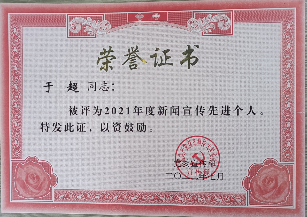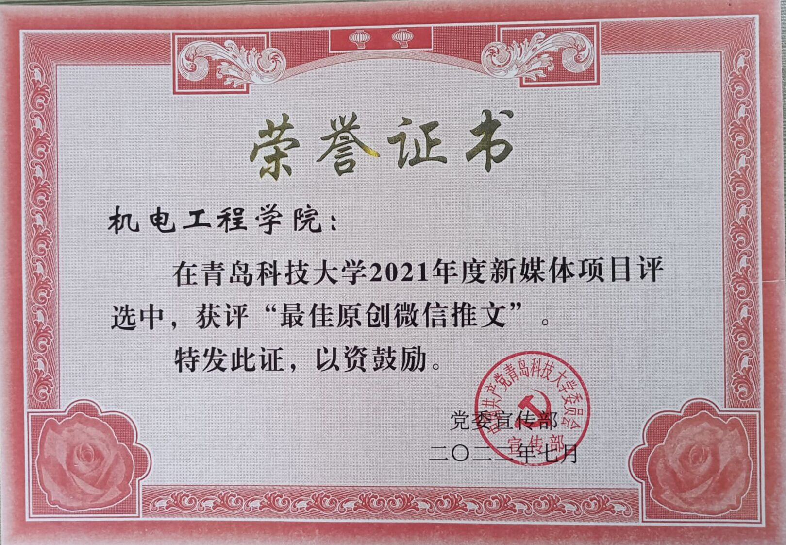 此外,学院在2021年度新媒体项目表彰中荣获多项荣誉。学院荣获2021年度新闻宣传先进单位,微信公众号“3003新葡官方网站”荣获2021年度最具影响力微信公众平台,新媒体项目评选中获评“最具影响力短视频”、“最佳原创微信推文”和“最受欢迎微信公众号”,于超获2021年度新闻宣传先进个人。