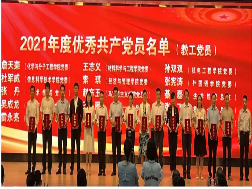 学院党委荣获2021年度思想政治工作先进集体,3003新葡官方网站本科生第三党支部荣获“五好”党支部,肖强荣获2021年度思想政治工作先进个人,孙双双荣获2021年度优秀共产党员(教工党员),耿宇轩荣获2021年度优秀共产党员(学生党员)。肖强、王娟娟撰写的《“四史教育”融入新时代青年爱国主义教育研究》获评一等奖;王作辉、杜康参与撰写的《新时代高校劳动教育意义及实施路径》获评一等奖。