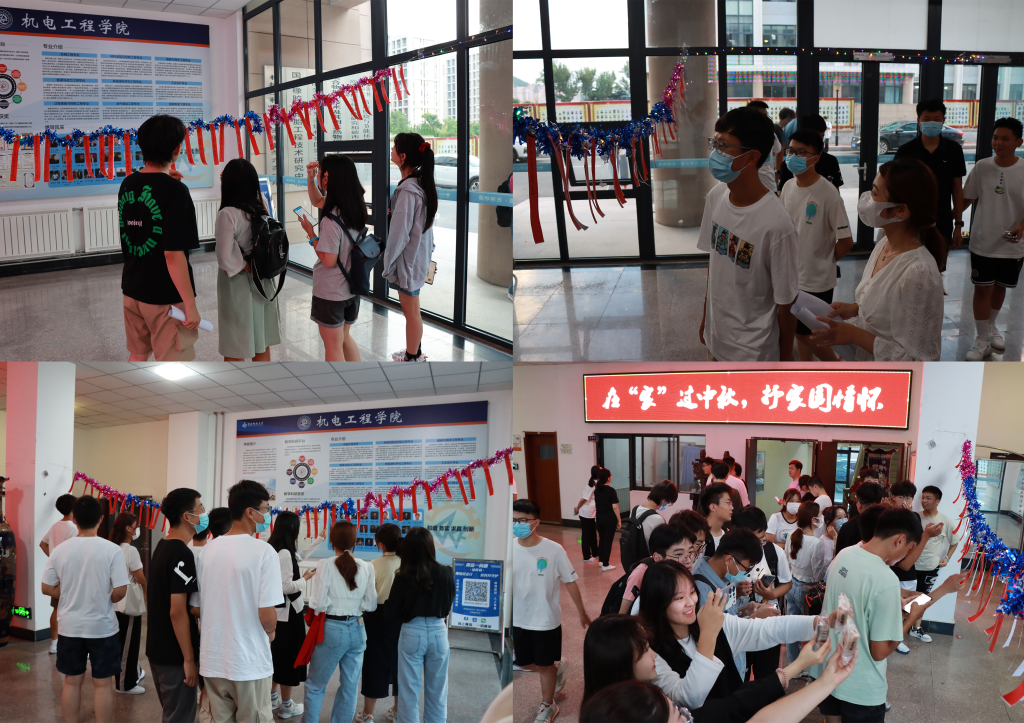 此次活动在3003新葡官方网站楼大厅设立中秋诗词比拼现场,将优美诗词与中秋民俗相结合,在诗词传递中体会优秀传统文化的磅礴力量,在历史沉淀中感受传统节日的团圆美好。现场对诗句、飞花令、猜灯谜等活动吸引了来自全院不同年级的同学参与,他们积极展现自己的诗词功底,现场气氛十分热烈。机电学子用其独有的智慧与学识,“过五关,斩六将”,活动现场充满了同学们诗词接龙的欢声笑语。