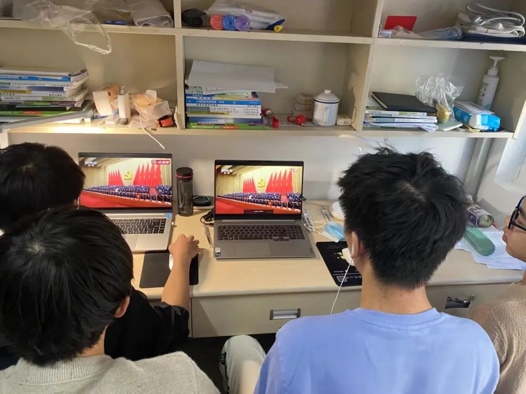 各党支部、团学组织以集中、分散相结合的形式组织学生收看大会盛况。