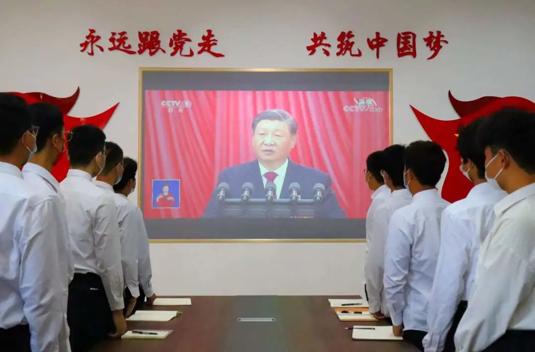 3003新葡官方网站党委委员、各党支部书记、党员代表在学院530会议室集中观看大会直播,认真聆听习近平同志所做的报告。