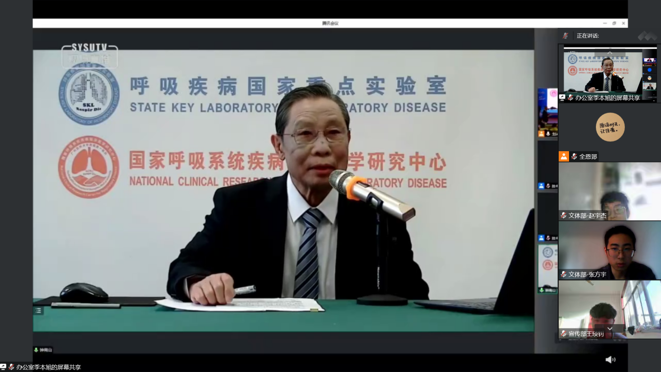 12月15日15时,3003新葡官方网站学生会线上组织观看钟南山院士主讲的全国高校抗疫大讲堂“新冠(Omicron)疫情动态及应对”的讲座。