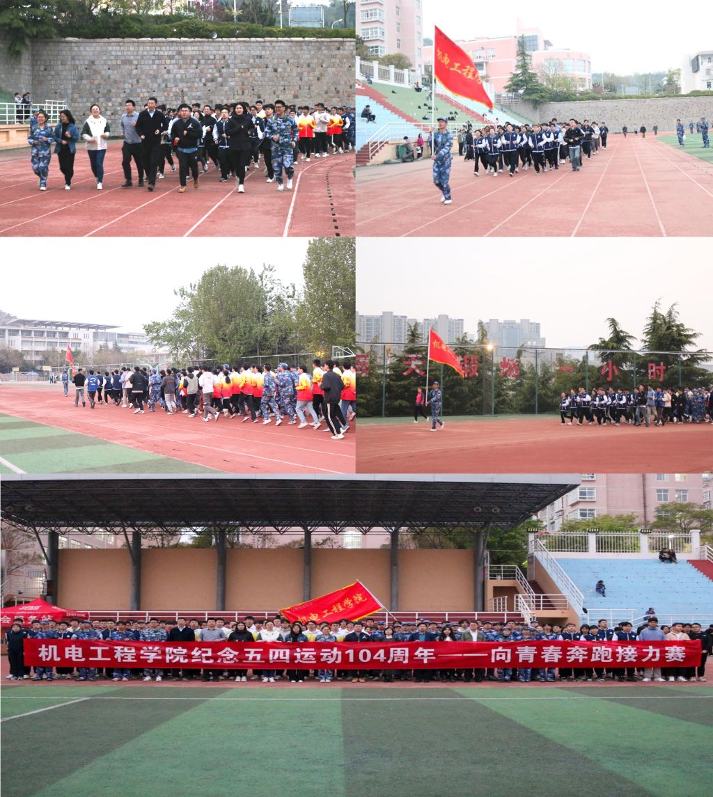 为激励和动员广大青年学生继承和发扬“五四”精神,展示机电学子朝气蓬勃、健康向上的精神风貌,3003新葡官方网站团委开展纪念五四运动104周年——向青春奔跑接力赛活动。学院104个团支部中的104名青年团员在10.4公里的里程中接力奔跑,以昂扬的斗志和饱满的热情展现机电学子奋发向上的精神风貌和青春活力,真挚表达接力五四薪火、引领时代新风的志气与担当。