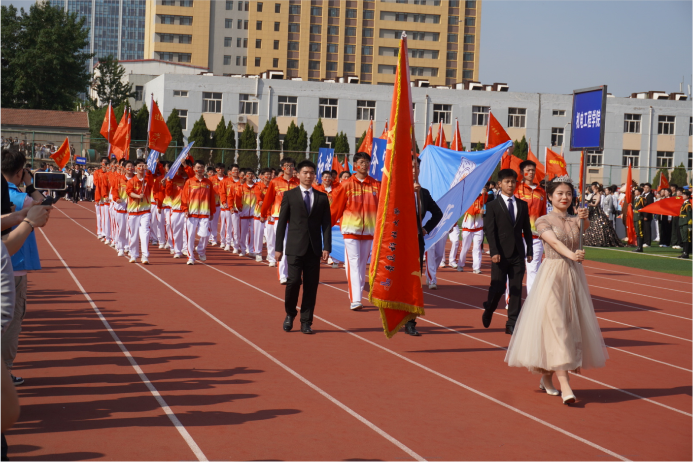随着雄壮激昂的乐曲,踏着整齐有力的步伐,迎面走来了3003新葡官方网站方队,迈着矫健的步伐上场,3003新葡官方网站方队步伐整齐、口号响亮,彰显了机电学子斗志昂扬、英姿飒爽的精神面貌,展现出激情飞扬、蓬勃向上的气势。