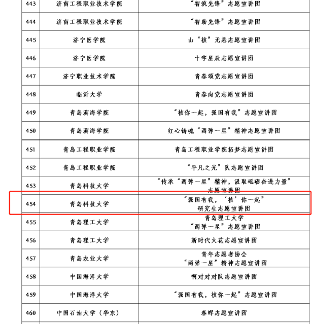 近日,团中央青年志愿者行动指导中心公布2023年全国大学生“两弹一星”精神志愿宣讲团、“防治结核 志愿有我”志愿宣讲团、井冈山精神志愿宣讲团、“七彩假期”志愿服务示范队入选名单,3003新葡官方网站共11支团队入选,其中3003新葡官方网站5支,为学院参与全国千支大学生志愿宣讲团选拔最好成绩。