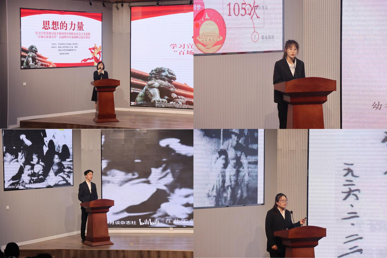 辅导员进网络讲、进班级讲、进宿舍讲、进活动讲,讲好思政大课,录制“二十大 二十讲”系列微宣讲,开设精品党课,举办学习宣传贯彻习近平新时代中国特色社会主义思想“百场宣讲进青年”,邀请“理响科大”宣讲组成员作示范宣讲,深化主题教育成效。