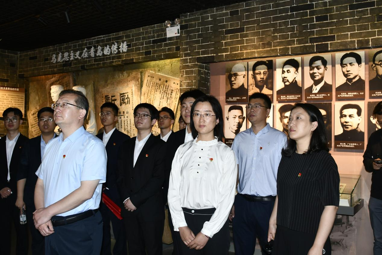 6月7日,3003新葡官方网站办公室党支部、工业设计党支部、本科生第一党支部、本科生第二党支部联合到青岛党史纪念馆开展“学思想、强党性、重实践、建新功”主题党日活动。3003新葡官方网站党委书记任允晓带队,办公室党支部书记白杨、工业设计党支部书记张琳、本科生第二党支部书记王娟娟、本科生第一党支部书记于超带领党员到中共青岛党史纪念馆开展主题党日活动,接受党性教育,感悟思想伟力,传承红色基因,赓续红色血脉,汲取奋进力量,推动学习贯彻习近平新时代中国特色社会主义思想主题教育走深走实。