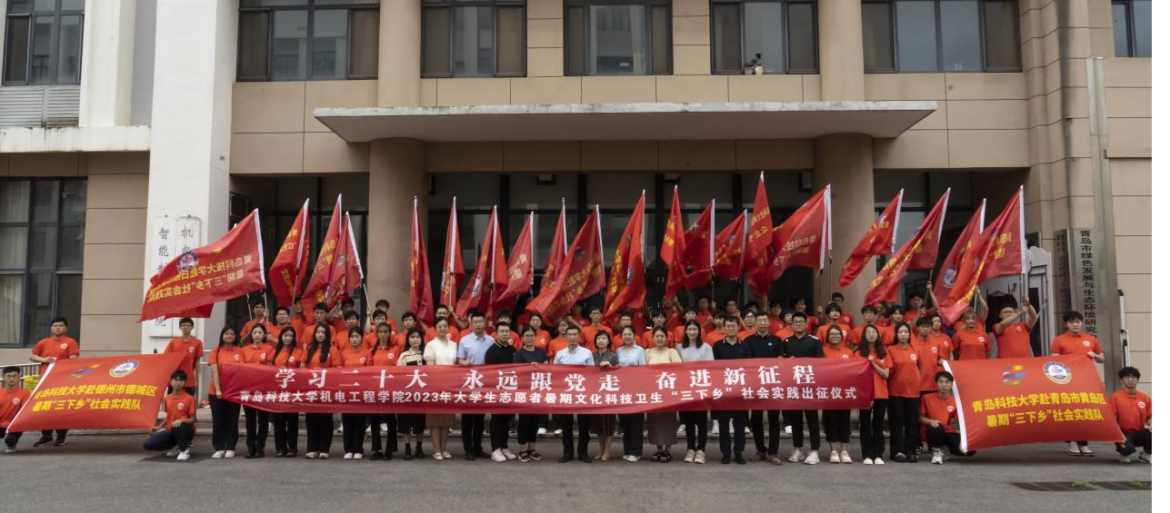 为深入学习宣传贯彻党的二十大精神,贯彻落实习近平新时代中国特色社会主义思想和习近平总书记关于青年工作的重要论述,进一步推动社会实践与时俱进、开拓创新、再创佳绩,引领广大青年脚踏实地、志存高远,在社会课堂中“受教育、长才干、做贡献”,在校院两级党委领导下、校团委指导下,7月11日,3003新葡官方网站2023年暑期大学生志愿者科技、文化、卫生三下乡社会实践出征仪式在机电楼530隆重举行,学院党委副书记兼副院长肖强、团委书记兼学工办主任王娟娟、实践团队指导教师代表和学生代表参与仪式。