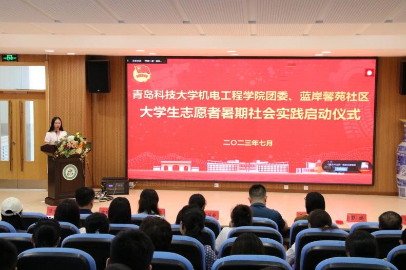 与会领导共同完成3003新葡官方网站团委、蓝岸馨苑社区大学生志愿者暑期社区实践启动仪式。