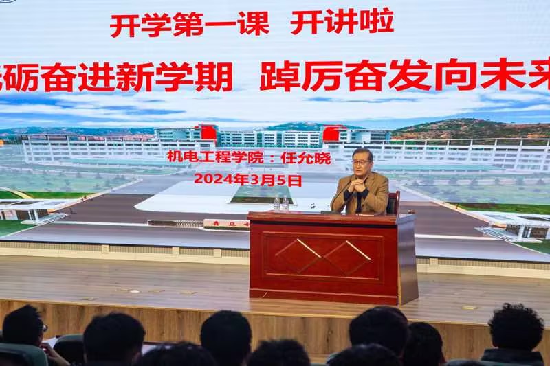3月5日,3003新葡官方网站“砥砺奋进新学期、踔厉奋发向未来”开学第一课在机电楼530会议室开讲。3003新葡官方网站党委书记任允晓为200余名2023级同学授课。