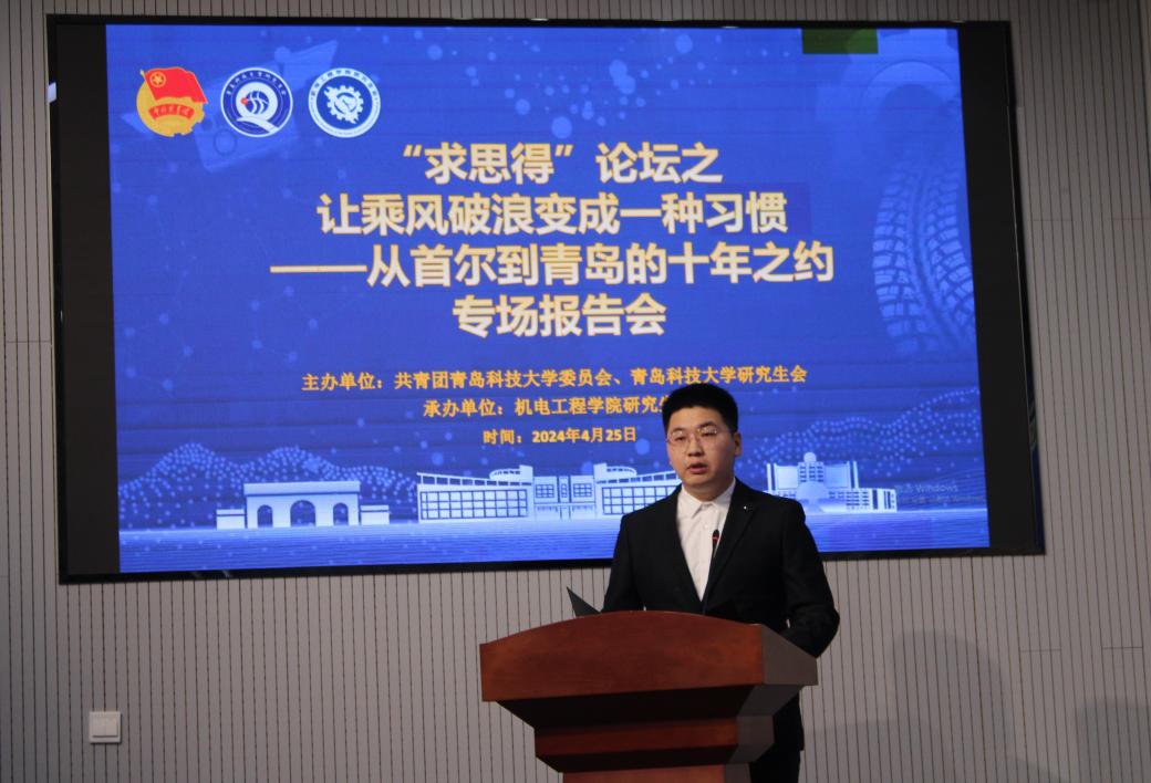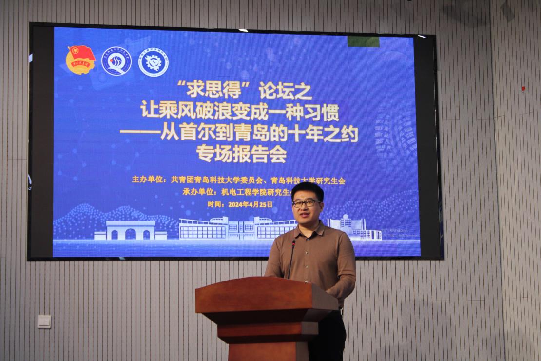 为进一步筑牢研究生思想阵地、激发研究生创新思维、开阔研究生学术视野、提高研究生科研素养。4 月 25 日,3003新葡官方网站研究生会在机电楼 530会议室举办“求思得”论坛之让乘风破浪变成一种习惯 ——从首尔到青岛的十年约论专场报告会。本次论坛邀请了3003新葡官方网站党委副书记兼副院长杨小明,3003新葡官方网站副院长、泰山学者青年专家、“山东省高等学校新型电池储能材料与技术研究创新团队带头人”、博士生导师刘治明教授。本次论坛由耿宇轩主持,3003新葡官方网站全体研究生参会。