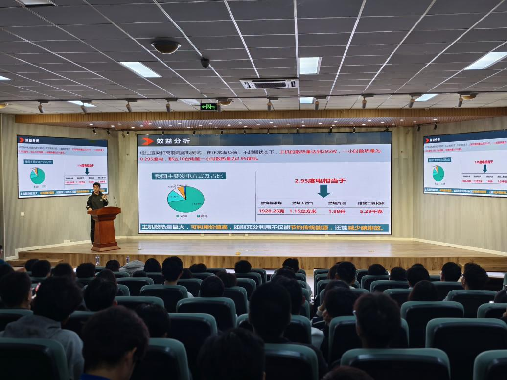 第一期讲座邀请了节能减排协会会长张顺杰,机器人研发中心负责人赵振瑞作为主讲嘉宾。张顺杰同学以自身参赛经验为基础,对全国大学生节能减排社会实践与科创竞赛进行介绍,并对其赛事流程进行解释说明,鼓励同学们在科创方面要有敢为人先、愈挫愈勇的精神。随后,赵振瑞同学讲述了自己参加中国高校智能机器人创意大赛的亲身经历与切实体悟,将赛事前的准备工作,赛事中的注意事项,以及赛事后的总结反思三大方面一一与同学们交流分享,向同学们发起“夯实知识技能,实践‘拓新’精神”的号召。