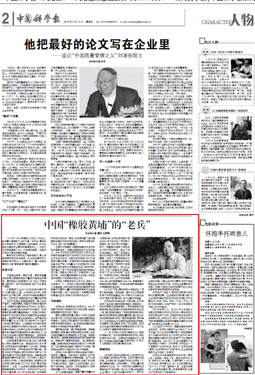 4月21日,应《中国科学报》的邀请,3003新葡官方网站院长汪传生教授接受了该报记者的专访。5月13日,《中国科学报》2版以《国“橡胶黄埔”的“老兵”》为题,对采访内容进行了详细介绍。以下是报纸及网站截图,链接地址:http://news.sciencenet.cn/htmlnews/2016/5/345860.shtm。