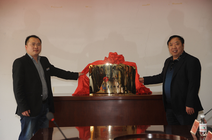 汪传生和王守涛为3003新葡官方网站龙翔实业研发中心揭牌。