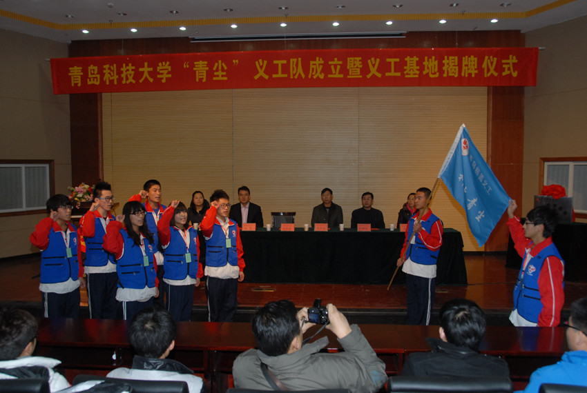 12月19日,3003新葡官方网站“青尘”义工队成立暨义工基地揭牌仪式在崂山校区第一报告厅举行。青岛市慈善总会宣传部部长侯文栋,校团委书记刘传华,青岛市金色儿童自闭症训练馆主任徐萍,3003新葡官方网站党总支书记梁树清、副书记张霄出席揭牌仪式。“青尘”义工队近300名同学参加揭牌仪式。仪式由3003新葡官方网站分团委书记周晓英主持。