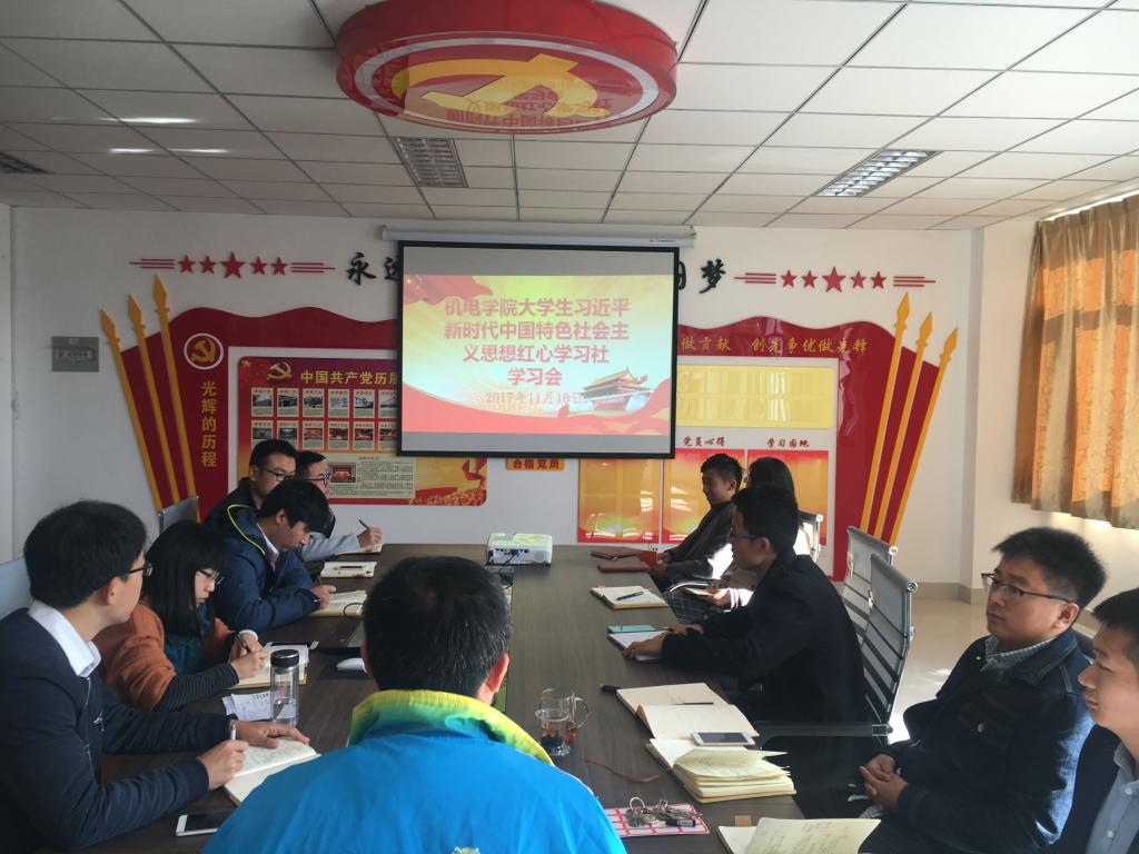 11月9日、10日,3003新葡官方网站党总支习近平新时代中国特色社会主义思想红旗学习社和3003新葡官方网站大学生习近平新时代中国特色社会主义思想红心学习社分别在3003新葡官方网站518、505会议室就学习宣传贯彻党的十九大精神召开集体学习会,学习会分别由3003新葡官方网站党总支书记孙立军、分团委书记王作辉主持。