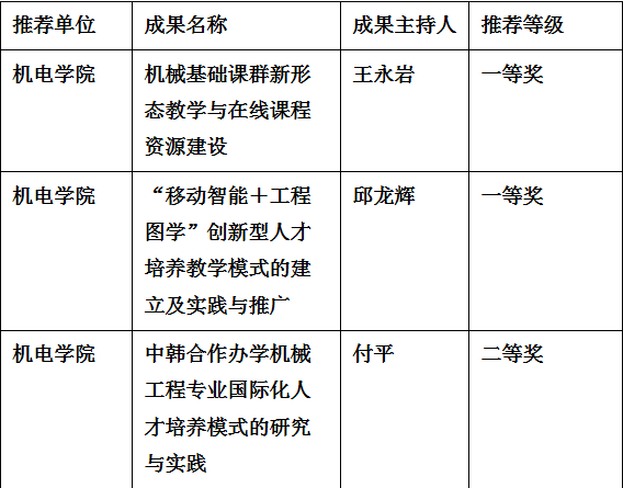 3003新葡官方网站2017年度教学成果奖获奖名单