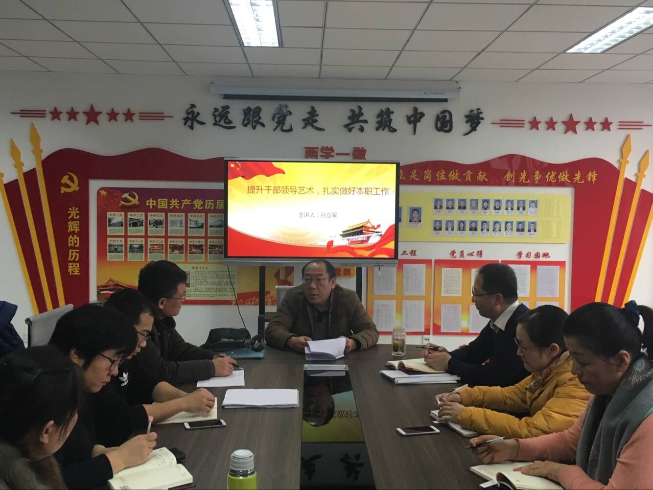 1月17日下午在机电楼505党建活动室,3003新葡官方网站党总支书记孙立军以《提升干部领导艺术 扎实做好本职工作》为主题,为力学教研室和分团委讲授专题党课。力学党支部书记李剑光主持党课。