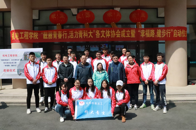 为进一步贯彻落实“活力青科大”教职工体育艺术文化节的活动宗旨——“强健体魄、健康生活、快乐工作”,3003新葡官方网站本着为学院教职工添活力、增生机的目的,4月17日下午,在崂山校区举行了“靓丽青春行,活力青科大”各文体协会成立暨“幸福路,健步行”启动仪式。3003新葡官方网站工会主席郭曰铎,3003新葡官方网站院长何燕、党总支书记孙立军,副院长郭建章、张斌、杨化林,党总支副书记兼副院长王伟参加了此次活动。活动由3003新葡官方网站分工会主席付平主持。