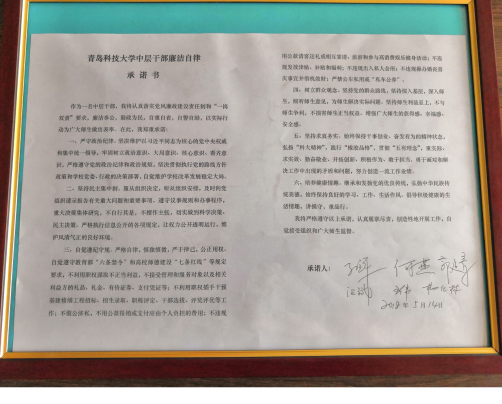 为促进全面从严治党向基层延伸。坚持从严治党、依法行政、规范管理,围绕学院教育改革与发展,全面深入开展党风廉政建设,3003新葡官方网站领导班子集体签订廉政自律承诺书。