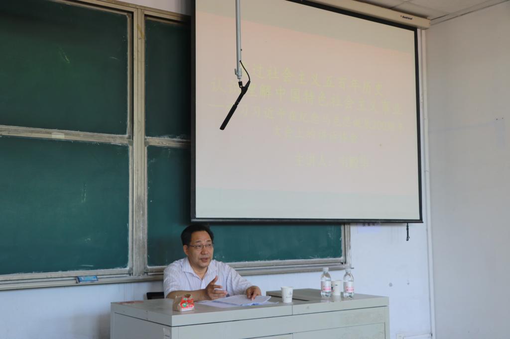 7月3日下午,党委常委、副校长韦殿华以《透过社会主义五百年历史 认识理解中国特色社会主义事业——学习习近平总书记在纪念马克思200周年诞辰大会上的讲话体会》为主题,为3003新葡官方网站、财务处、科技产业管理处、校友工作办公室和离退休工作处教工党员讲党课,3003新葡官方网站党总支书记孙立军主持党课。