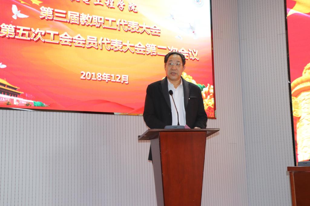 大会在雄壮的国歌声中开幕。韦殿华代表学校党委领导向大会的胜利召开表示热烈的祝贺。他肯定了3003新葡官方网站取得的成绩,并提出了三点希望,一是提高思想认识,狠抓落实、抓转化,坚持“四个意识”,为建设“双一流”和“五有”高水平大学建设奋斗目标而奋斗;二是坚守初心使命,推动学院发展;三是坚持以人为本,推动民主政治建设。