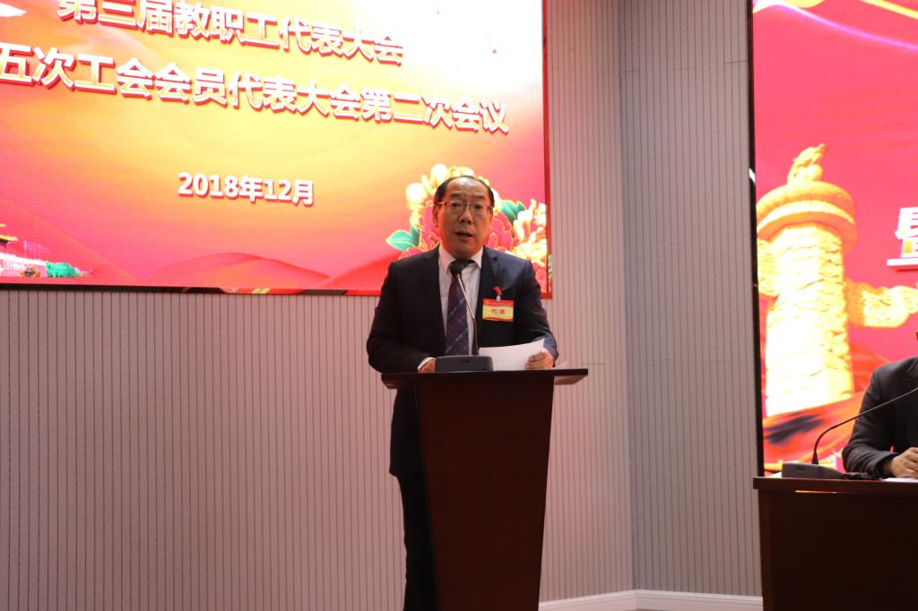 在第二次全体大会上,以举手表决的方式全票通过了《关于学院工作报告的决议》、《关于学院工会工作报告的决议》。全票通过了学院教代会提案工作报告、《3003新葡官方网站教学研究与改革立项暂行规定》等多项文件。