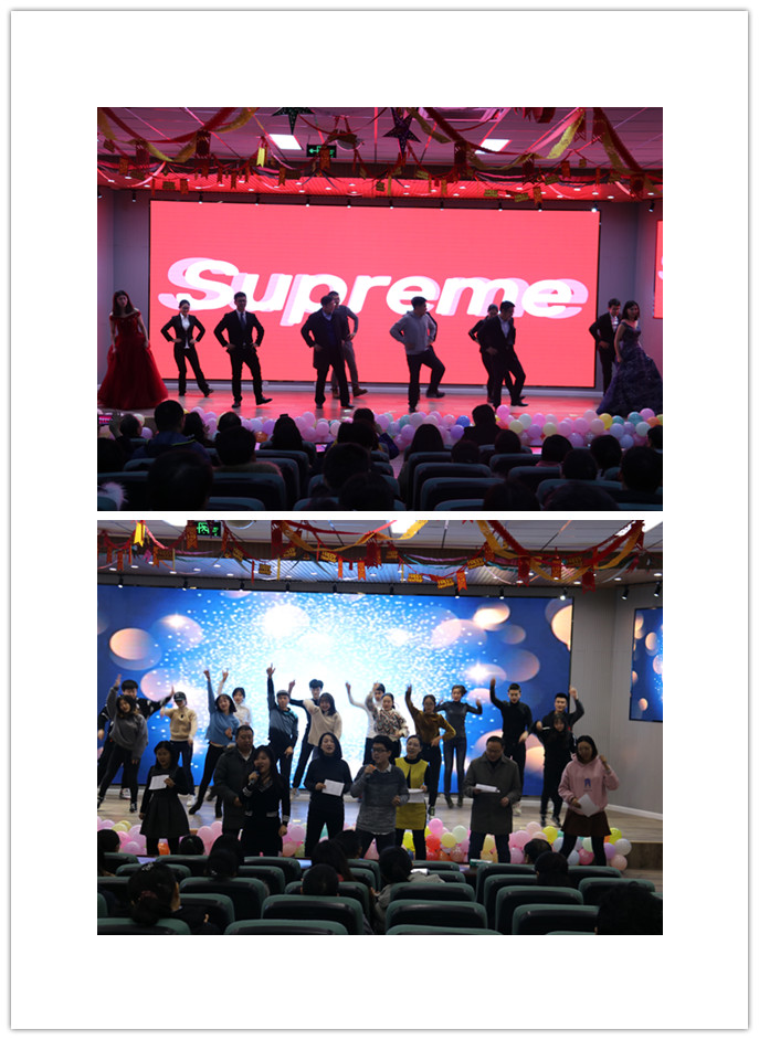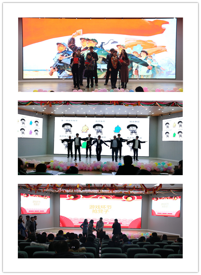 温馨的场景布置,处处充满着节日的欢乐。联欢会在艺术团悠扬的《祝酒歌》中拉开序幕。《月满西楼》、《我的中国心》、《甜蜜蜜》、京剧《锁麟囊》等展现了3003新葡官方网站老师多才多艺。合唱《春暖花开》、《我们走在大路上》、《走进新时代》等充满正能量,昂扬向上,表达了对3003新葡官方网站的祝福;《朋友》、《兰花草》、《隐形的翅膀》歌声洋洋盈耳,《团结就是力量》、《青苹果乐园》等歌声娓娓动听。一曲曲合唱,掀起一波又一波的高潮。对唱《天籁传奇》引起阵阵掌声,点燃了现场气氛。学院党政领导诗朗诵《春风第一枝》声情并茂,激昂澎湃,回顾了机电的风雨历程,体现了对机电的热爱和作为机电人的自豪。《欢乐一家人》、《海草》的舞蹈动作活力迸发,令众人捧腹,给大家带来了欢乐。