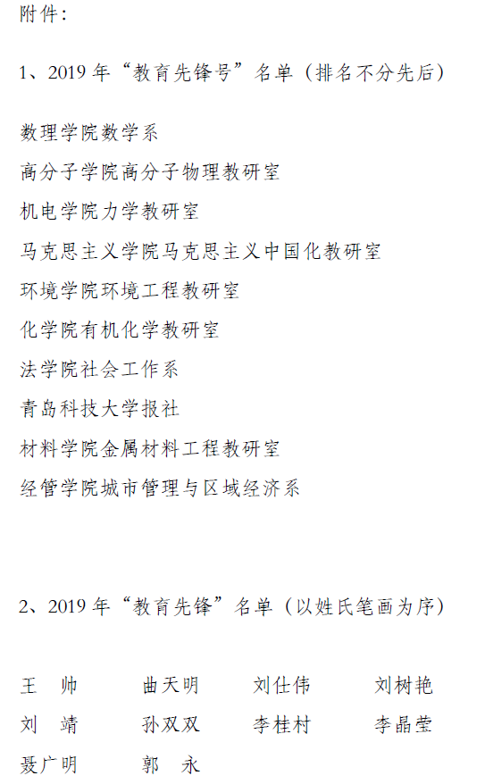 据悉,此次活动是根据全国省市总工会《关于深入开展创建“工人先锋号”活动的实施意见》文件精神,结合学校实际,开展的评选活动。 “教育先锋号”的授予对象是:为深化综合改革、提高教育教学质量和科技发展水平,为推动经济社会发展和“五有”高水平大学建设做出突出贡献,并具有时代性、先进性和示范性的教研室(系)、实验室、研究所(中心)、机关部门科室(不设科室的部门)、学院办公室、分团委、后勤和企业的车间班组等。“教育先锋”的授予对象是:为深化综合改革、提高教育教学质量和科技水平,为推动经济社会发展和“五有”高水平大学建设做出突出贡献,并具有时代性、先进性和示范性的教职工。