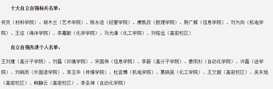 据悉,此次活动是根据《3003新葡官方网站“十大自立自强标兵”评选办法》,我校于2019年4月启动了第十五届“十大自立自强标兵”评选活动,经学生申请、学院推荐与公示、学校审核、现场评审等程序,评选出何爽等10名学生为“十大自立自强标兵”,王刘建等14名学生为“自立自强先进个人”。