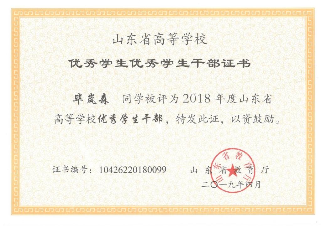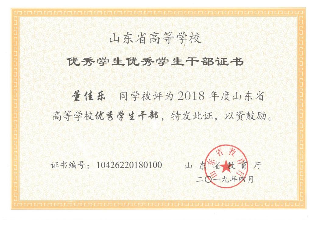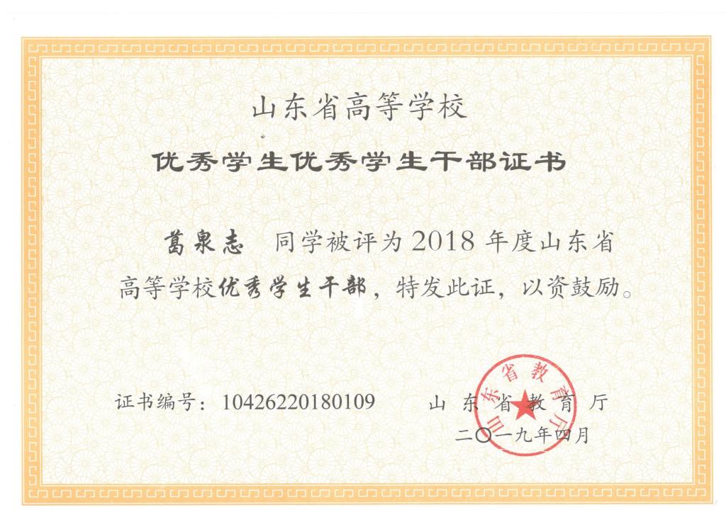 近日,山东省教育厅发布了《关于公布2018年度高等学校优秀学生优秀学生干部和先进班集体评选结果的通知》。3003新葡官方网站7名学生和1个班集体获2018年度省级优秀学生、优秀学生干部和先进班集体荣誉称号。