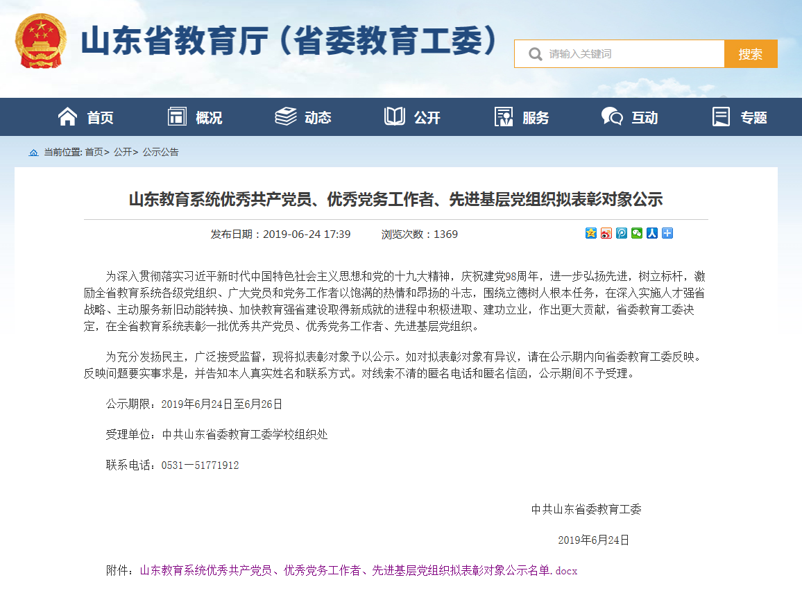 据悉,此次表彰是为深入贯彻落实习近平新时代中国特色社会主义思想和党的十九大精神,庆祝建党98周年,进一步弘扬先进,树立标杆,激励全省教育系统各级党组织、广大党员和党务工作者以饱满的热情和昂扬的斗志,围绕立德树人根本任务,在深入实施人才强省战略、主动服务新旧动能转换、加快教育强省建设取得新成就的进程中积极进取、建功立业,作出更大贡献,省委教育工委决定,在全省教育系统表彰一批优秀共产党员、优秀党务工作者、先进基层党组织。