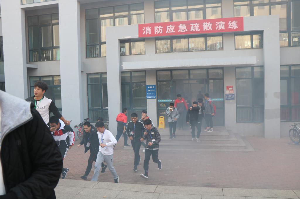 随着急促的警报声响起,演练正式开始。模拟起火地点为北苑三号楼一楼,整个楼道烟雾弥漫,在宿舍的同学们在听到警报后,迅速有序的在楼道站队集合,同学们纷纷用湿毛巾捂住口鼻、俯身迅速从楼梯、疏散通道向楼下空地转移,几百名学生在几分钟内全部安全撤离,各班委、学生会负责同学清点人数无误。本次逃生演习顺利结束。