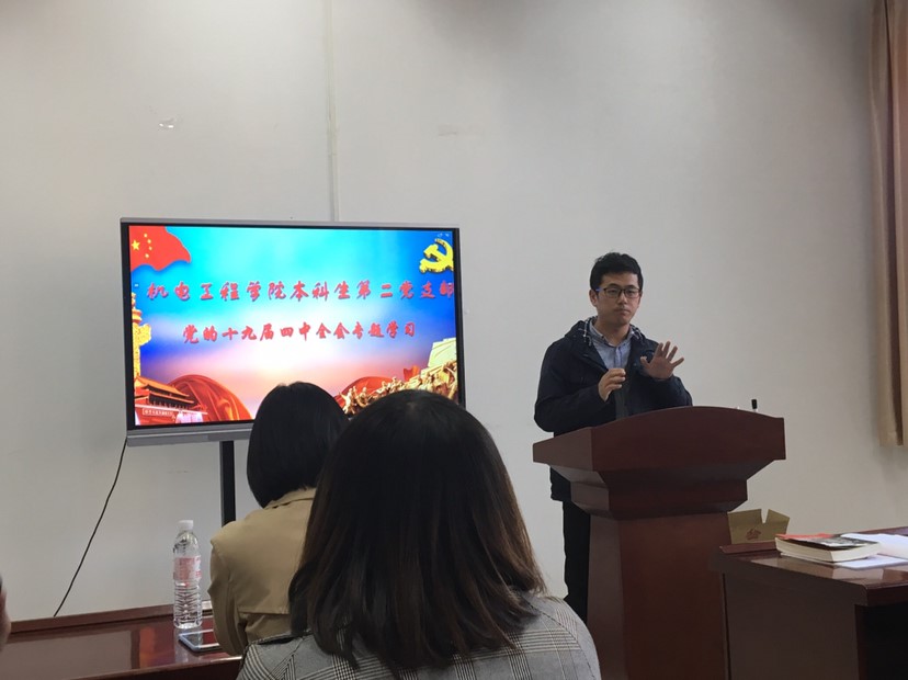 11月19日,3003新葡官方网站本科生第二党支部在机电大楼529召开了党的十九届四中全会专题学习,本次会议重点围绕习近平总书记在党的十九届四中全会上的报告和重要讲话的精神做交流发言,支部书记曲智强主持学习。