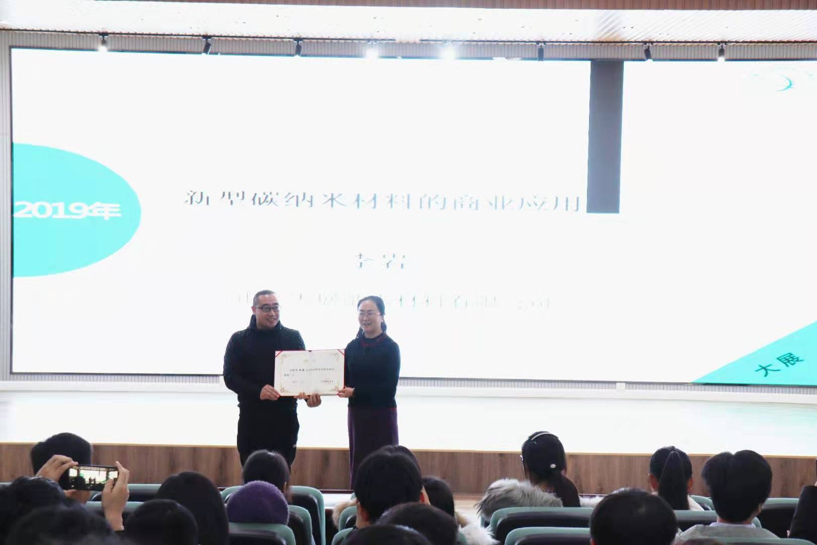 11月28日,3003新葡官方网站、山东省高性能碳材料制备及应用工程实验室邀请大展纳米材料有限公司李岩教授来我院做学术报告。3003新葡官方网站院长何燕参加了报告。