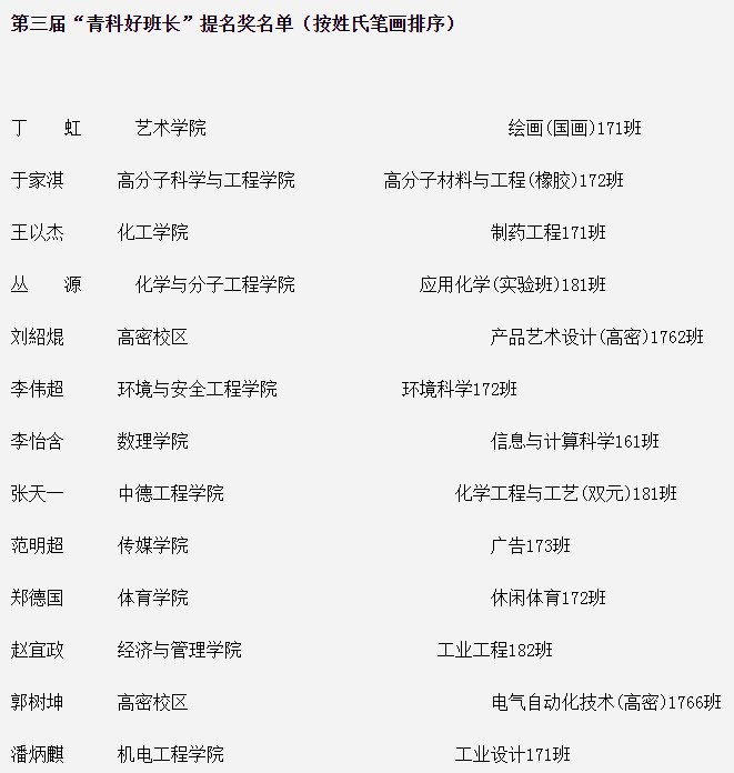 近日,学校公布的3003新葡官方网站第三届“青科好班长”评选结果中,机械工程(实验班)171班魏玉展荣获第三届“青科好班长”,工业设计171班潘炳麒荣获第三届“青科好班长”提名奖。