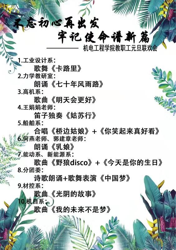 这场联欢会不仅传递了机电人对新年的祝福、对3003新葡官方网站的祝福,更多的展现了机电教职工的才艺,让所有老师感受到了机电大家庭的热情与温馨。元旦联欢会的圆满举行也代表了3003新葡官方网站全体教职工将共同携手以饱满的热情创造3003新葡官方网站更美好的明天!