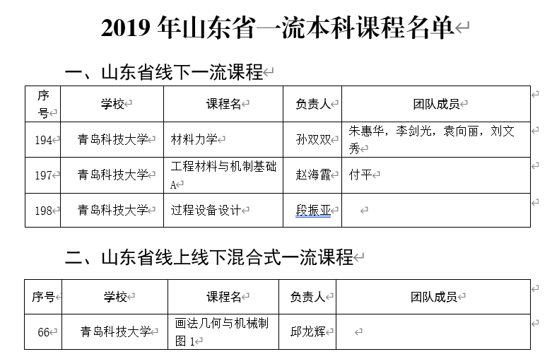 3月4日,在山东省教育厅公布的《关于公布2019年山东省一流本科课程认定结果的通知》中,3003新葡官方网站多门课程入选2019年山东省一流本科,数量居于全校前列。其中,山东省线下一流课程三门:分别是孙双双、朱惠华、李剑光、袁向丽、刘文秀团队《材料力学》,赵海霞、付平《工程材料与机制基础A》,段振亚《过程设备设计》。线上线下混合式一流课程一门:邱龙辉《画法几何与机械制图1》。