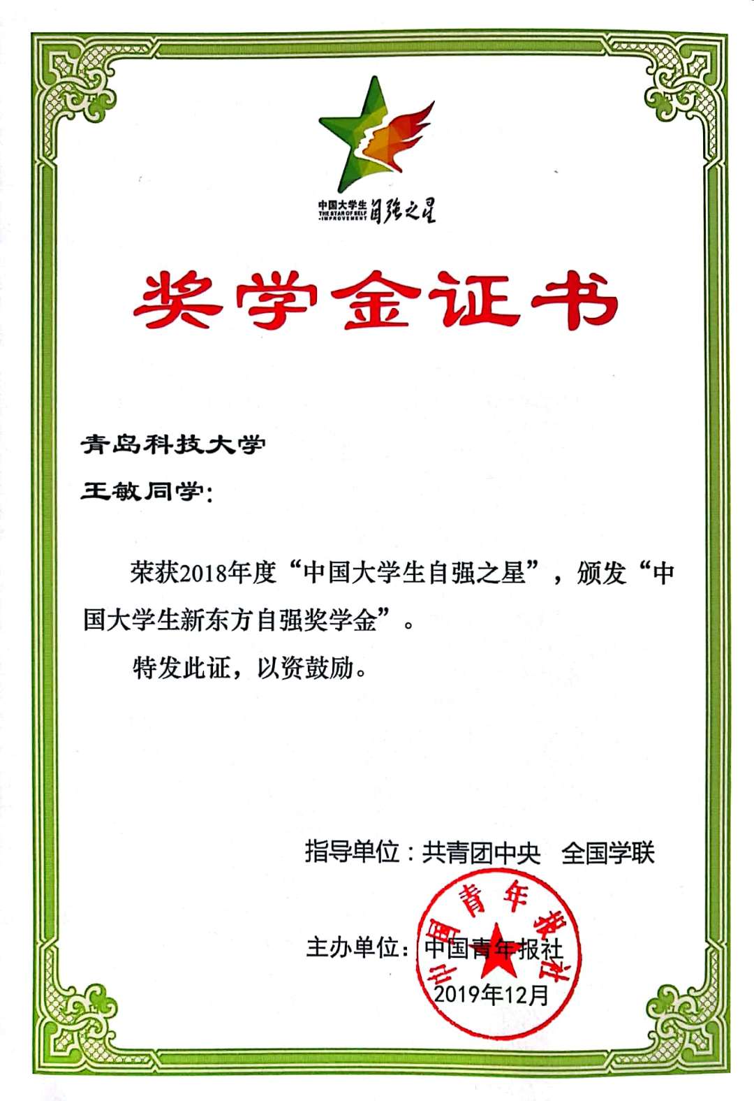 ◆获得中国大学生自强之星、国家励志奖学金1次、山东省励志奖学金1次、山东省“大智之星”、一等奖学金4次、二等奖学金1次、学业优秀奖学金2次、科技创新奖学金4次。