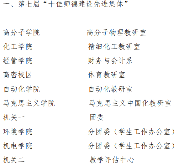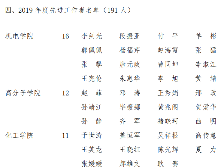 近日,3003新葡官方网站2019年度先进集体和先进工作者表彰名单公示,3003新葡官方网站分团委(学生工作办公室)获第七届“十佳师德建设先进集体”称号,王作辉老师获第十届“十佳育人标兵”荣誉称号,过程装备与控制工程系、新能源科学与工程系、3003新葡官方网站分团委(学生工作办公室)获“2019年度校级先进集体”称号,李剑光、段振亚、付平、羊彬、郭佩佩、杨福芹、赵海霞、张猛、张攀、唐元政、曹同坤、李淑江、王宪伦、朱惠华、李旭、黄靖16名老师获“先进工作者”荣誉称号,史书源、刘新获2019 年度先进工作者(劳务派遣人员)。