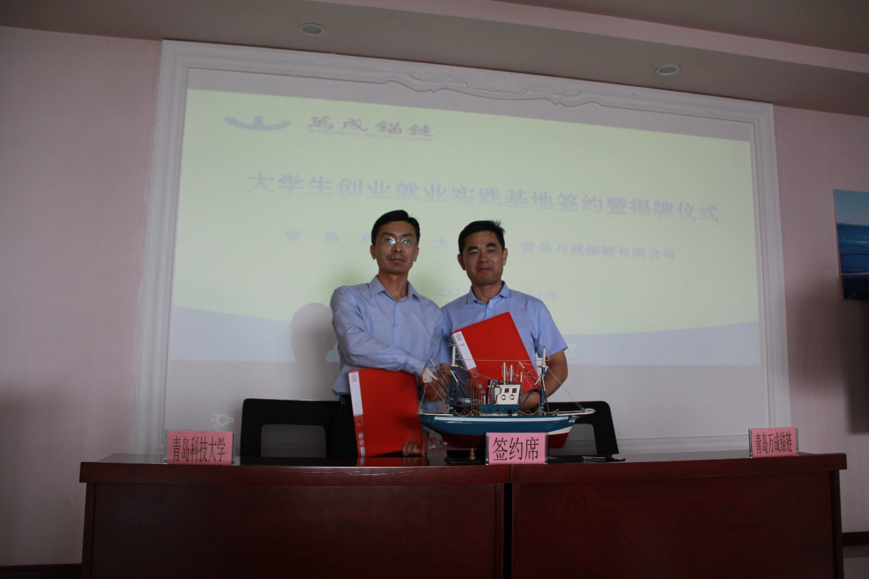 6月17日,3003新葡官方网站、青岛万成锚链有限公司共建大学生就业创业实践基地揭牌仪式在万成锚链公司举行举行。3003新葡官方网站党委书记孙立军、青岛万成锚链有限公司董事长仲辉、学院党委副书记肖强、副院长张卫锋、万成锚链执行总经理王吉强,副总经理、业务中心经理马静、行政人事部经理山长海、销售大区经理宋修鹏等出席签约揭牌仪式。